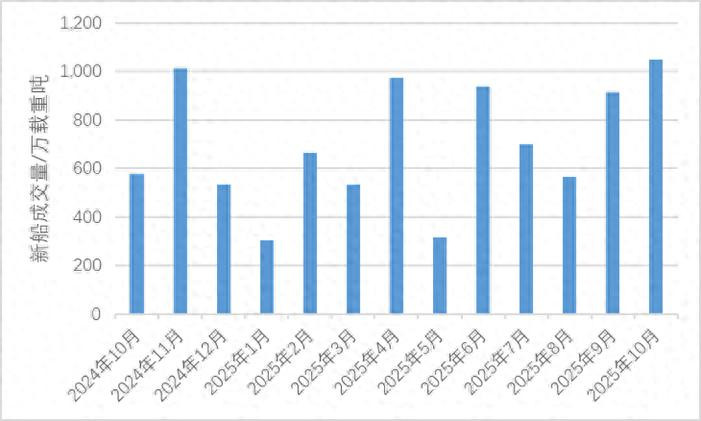 10月,全球成交新船订单136艘1048万载重吨,新船订单量较9月继续上涨,按载重吨计,环比增长14.5%。在10月的新船订单中,油船成为占比最高的船型,按载重吨计,占40%;其次为散货船天宇优配 ,占比达到26%。10月,中国再次领跑全球新造船市场,按载重吨计,接单量占全球订单的80.8%。